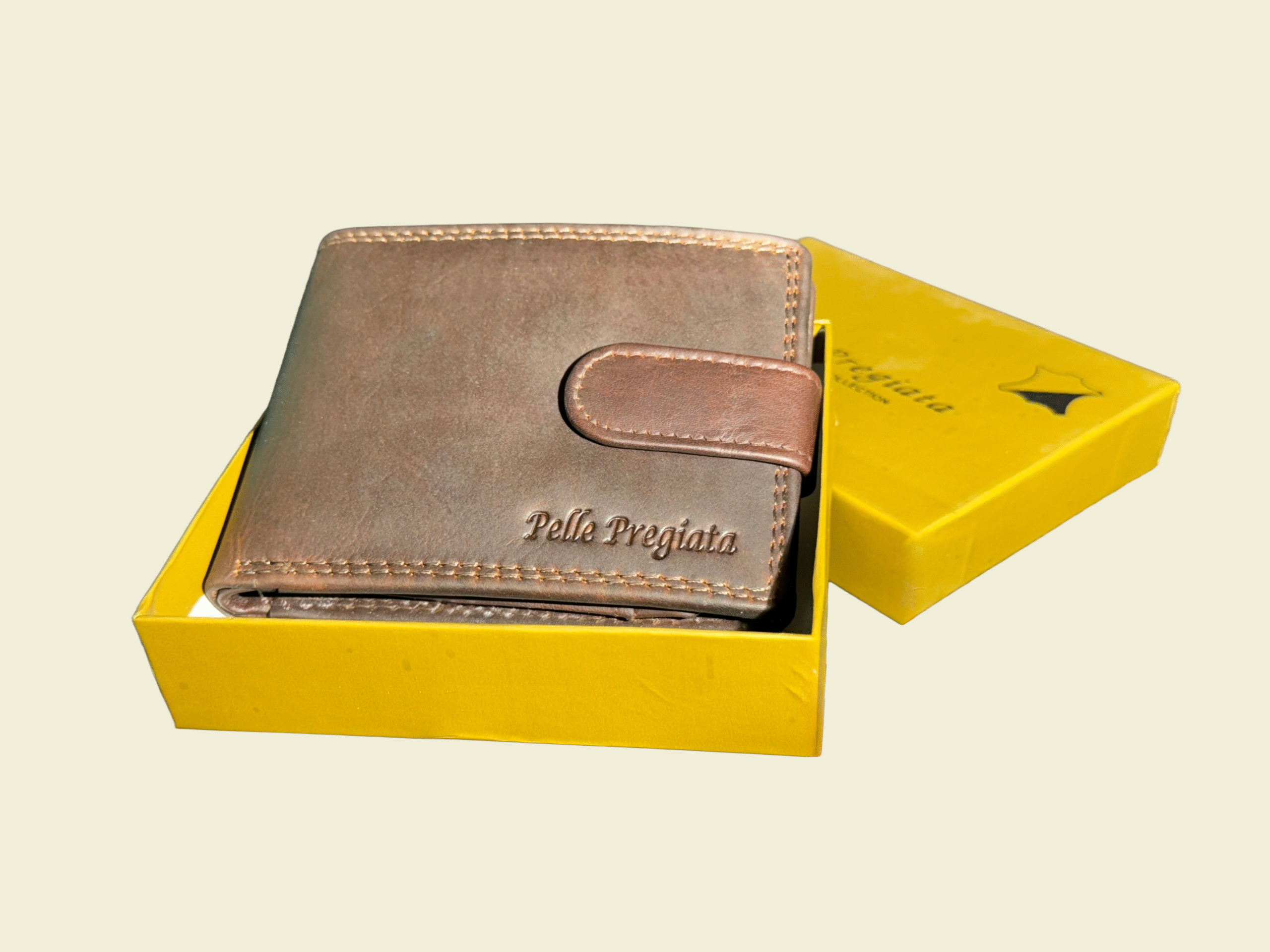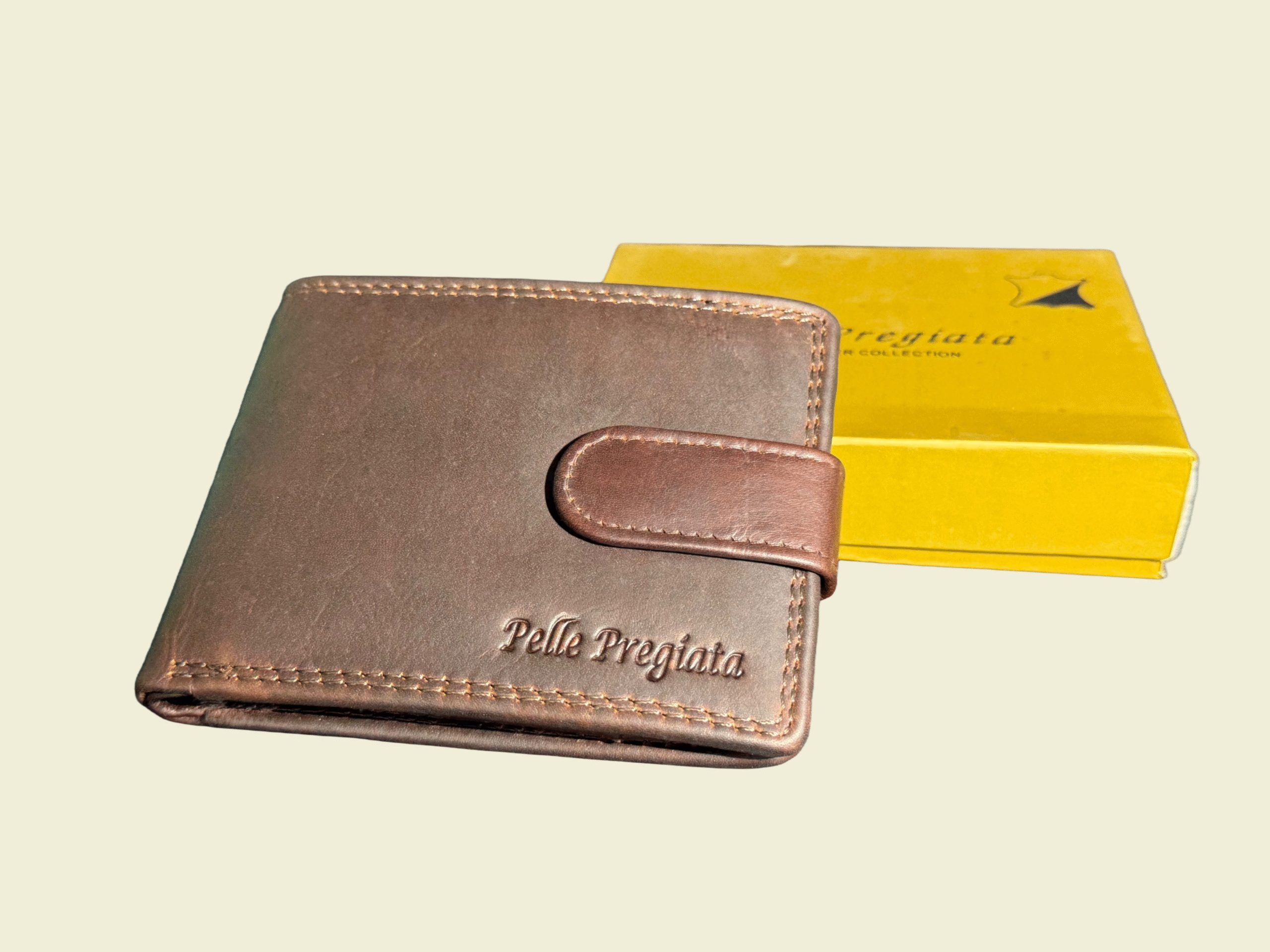 The Pelle Pregiata Hunter Brown Wallet is a statement of refined craftsmanship and rugged elegance. Made from premium genuine leather, this wallet showcases a rich hunter brown finish that ages beautifully with time, developing a unique patina that reflects your personal journey. Designed for the modern man, it combines style with practicality — featuring multiple card slots, a spacious currency compartment, and a secure coin pocket to keep your essentials organized. The soft yet sturdy leather ensures long-lasting durability, while the sleek, minimal design fits comfortably in your hand or pocket. Perfect for both casual and formal occasions, this wallet embodies the true essence of sophistication and everyday luxury that defines Pelle Pregiata.